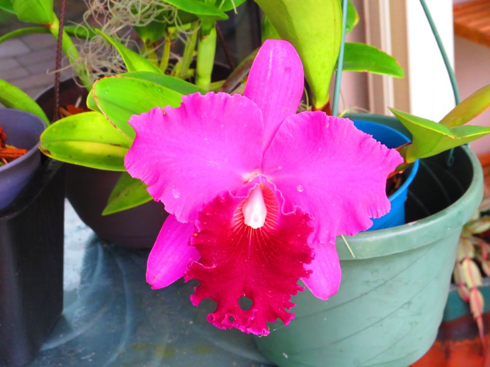 南佛州有这优势,可以室外生态养兰。很容易,省事。只需将它们放在前、后院,或掛树冠下,或直接捆在树干上,或放在背阴的地上。在家时早上常去看看它们,喷喷水。出外旅游时,就完完全全地交给大自然管理了。蝴蝶兰和石斛开花快,这三年晒了不少。卡特兰呢,开花慢些,去夏开花时,我们去西部房车环游三个月。今夏时机到了。夏至以来,卡特兰含苞欲放,陆续[