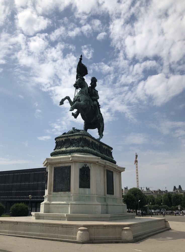 骑士图片拍自维也纳冬宫英雄广场(5/30/2018)。不知道为什么骑士头扭向后侧