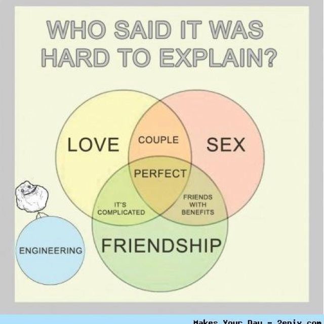 用下面两图来说明一下理科出身与工科出身的不同思维和能力。当人们如何看待爱情,性,朋友三者关系时。理工两类专业的给出了不截然不同的回答。