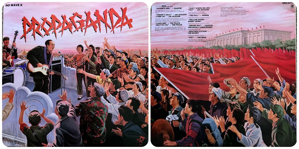 最近整理唱片,翻出一张很有意思的唱片,封面是伟大领袖弹电子吉他,一群红卫兵围着狂呼乱喊。唱片共11首歌曲,都是摇滚乐,没有一首跟中国有关系。唱片选这样红色的画面,还起名叫“宣传”,只能猜想是个商业噱头,吸引眼球。这让我想起几首跟中国有关系的摇滚歌曲,至少名字和歌词里有“中国”,比如DavidBowie的“ChinaGirl”。从歌词表面上看,[
