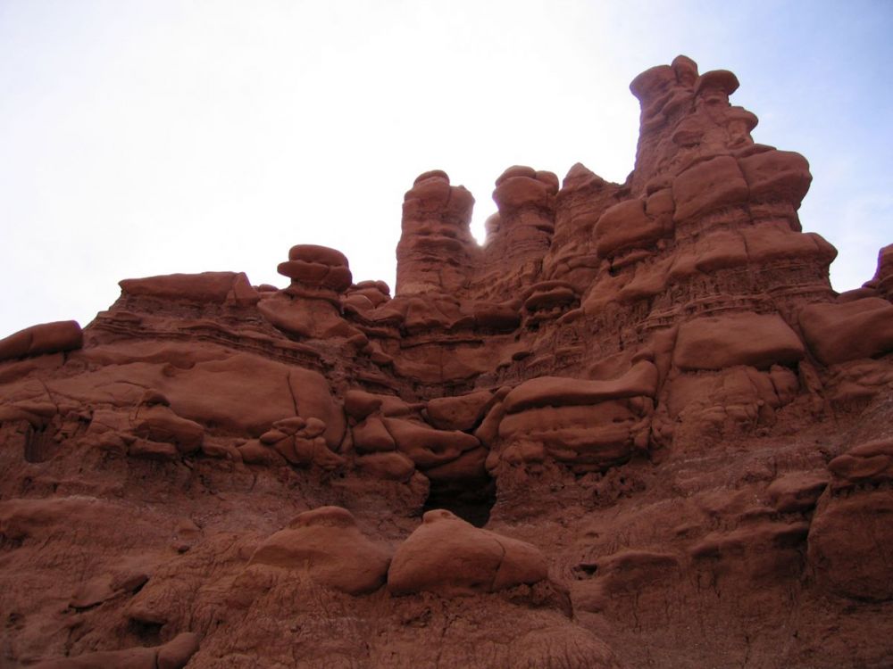 精灵谷(GoblinValley)面积不大,位于犹他州中部,HWY70号公路南侧,夹在CapitolReefNationalPark&CanyonlandsNationalPark中间,进入的地方,可于70号公路,出口149,转入24公路,经此路连接入园路,再一个是70号公路的出口131,取南向土路,(是一条沙石路)再连接入园路,都可以到达。精灵谷的冬菇石娇小玲胧,同Holeintherockroad的魔鬼花园(DevilsGarden)内的岩体,较为相似.此处有多条步道让你选择,深入谷内探险,[