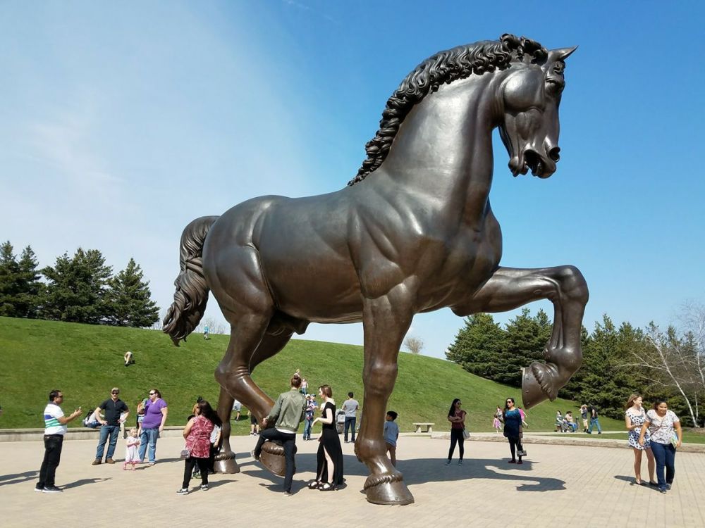 这巨形马雕塑高达24尺,位于密西根州,大瀑布市(GrandRapids)的梅杰花园与雕塑公园(FrederikMeijerGardens&SculpturePark)内,共有170件雕塑制作品立于园中,三个密西根州最大的热带温室,和三个室内主题公园,与纽约州的StormKingSculpturePark是同类形.巨马雕塑座标:42度58'50.83"85度35'09.53"[