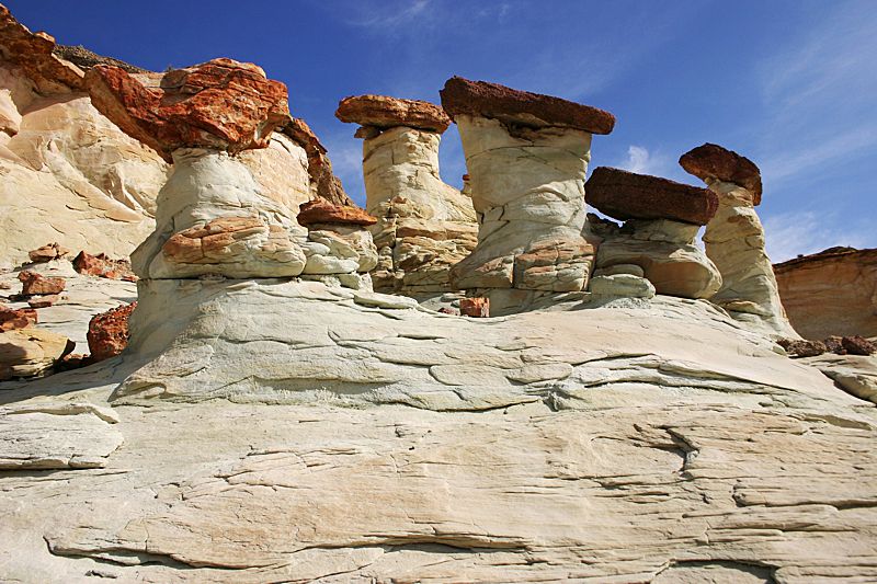 台阶峡谷(SidestepCanyon)位于WahweapHoodoos(白塔石林)西南侧,不足3英里距离,进入时,情况同WahweapHoodoos石林一样,一是徒步进入,入口与WahweapHoodoosTrail步道是同一条路,只是在铁网栏那里分手,到时站于铁网栏前,左侧干河床边缘就见到一条土路斜向上,这条路过去是可以开车进入的,近年已不允许了,只能徒步.长约2.4里,人走在车路上,不辛苦,再一个选择是开车,经CottonwoodRd,转入BLM431土路进[