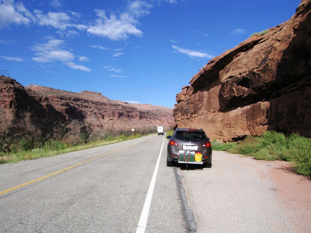 279号公路,源于魔押镇(Moab)之191号公路,全长约35英里,铺了立青段约20英里,如续走后段沙石路,最终到达死马点州立公园(DeadHorsePointS.P)内,整条公路建于山谷内,沿途山岩峭壁宏伟,途中可到达的地方分别有FunnelArch,HunterArch,与CoronaArch....等著名的拱门岩,最终再经LongCanyonRd到达死马点公园.是一条绝美的风景路.一对爬岩勇士这里相信以前是土著印第安人的居住处,当局建石墙作保护,变成[