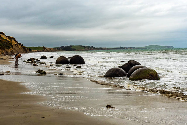 新西兰充满神秘奇观的景色,这是南岛东海岸KoekoheBeach滩上巨大的球形岩石.有超过50个石蛋分布在这滩上.最大的石达数吨.巨石滩在达尼丁北面.观看巨石滩的卫星图.泊车场座标:45度21'04.03"S170度49'41.36"E这些岩蛋来自那?火山溶岩滚落过程形成蛋状到这里?也有种解释,几千万年前海底沉积物形成的,海洋中的石灰晶体积累其他矿物质演变成巨石形成.随时间推移,海床被抬[