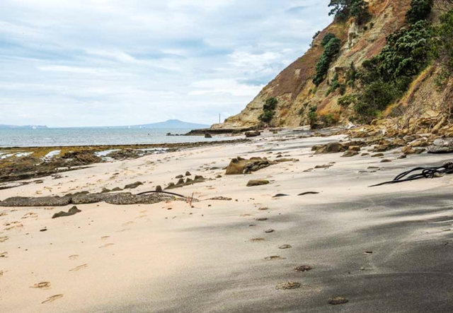 "粉红海滩"位于奥克兰北面约40多公里.旺阿帕劳阿东侧的莎士比亚公园内,是出海半岛的顶端.先看看公园卫星图.公园泊车区座林:36度36'05.81"S174度48'48.55"E由奥克兰的皇后亍转入1号公路北上再折东去.图片右上角是下滩的白楼梯.环绕半岛共有三个海滩.粉红滩是其中一个.细看才知,粉红色素来自贝壳,成千上万贝壳破碎后形成的.这令我想起了加州的玻璃海滩.莎士[