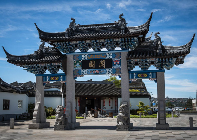 兰园是新西兰唯一的中国园林.座落于南岛的达尼丁城中.园林传统元素是水,石,桥.凉亭与植物.建筑由上海建造,运来达尼丁组装而成.花靓茶香.[