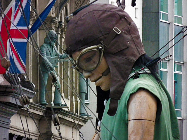 4月20日,在英格兰中部的利物浦举办了一场关于女孩海奥德赛街头戏剧活动.情景是一位女孩乘船到离家当潜水员的父亲处会面......其实,我认为吸引人们眼光的并非故事内容感人.而是艺术家们如何操作控制几个巨型牵线木偶道具.使道具能开眼,合眼.转头,行走坐下,踏车.接受父亲拥抱等动作.吸引上万人围观与欢呼.运用中国的拉线公仔表演灵感的拉绳表演技术.英国人做到了.要知道[