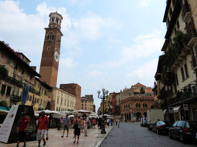 维罗纳(Verona)位于威尼斯西方65英里距.是一座历史悠久的美丽城镇.城中的罗马时代竞技场和剧院.是意大利的世界遗产.而莎士比亚的名作"罗密欧与茱丽叶"的凄美爱情故事就发生在这里,镇内保存了茱丽叶的故居.城镇售卖的饰物,也少不了罗密欧与茱丽叶.[