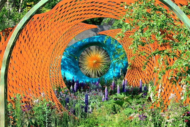 花园咖啡店.走累了,可稍休息下,来杯咖啡提下神.花园摆设的雕塑.被称为"围栏"的铜制雕.富含意义的几何图案,也是铜制的.隔壁的日本庭园.[