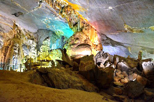 峰牙己榜溶洞是越南广平省,布泽县及明化县两县交界群山中,是联合国教科文组织于2003年6月列入世界遗产的越南风景点.在河内南方约500公里.邻近顺化市.距广平省的同海市约40公里远.在同海机场租车.可直接开到此溶洞公园.经步行到达溶洞村庄.再乘搭小艇入洞.[