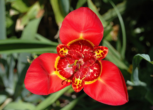 虎皮花为鸢尾科虎皮花属下的一个种.物种来自南美洲墨西哥等国,是一种观赏性植物,HomeDepot一年中只有一次半次卖过花苗.虽然此花只在早上才开,黄昏入黑前就凋谢.但每天都有不同的花开放,是一种摄影者喜好的拍摄花卉.幼苗时的状态.长大后的花芽.[