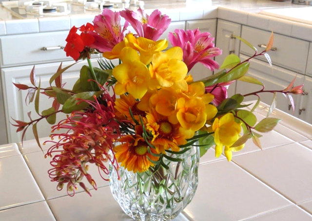 芬妮在插花学校是教师,认识她七八年最近才知她是插花拼盘高手......已完成的插花作品.背面.侧面.右侧面.变换角度去看,都美.插花所需材料选择是门学问,如何摆设(插)是艺术灵魂.再看这一瓶.主题要凸出.[