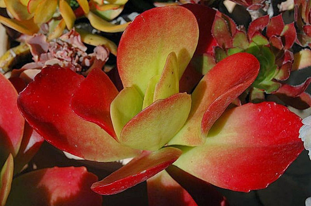 这是南加州一处的石莲育苗基地,园内建有室棚多个,每个约4至6000平方尺,育有"CampfireCrassula"."Graptoveria"."FrancescoBaldi"....等多个品种,供应全美各州的景天科爱好者所需.生产模息情况有点似荷兰的花卉供应基地,石莲株形似莲花盛开,翠绿带色且肥厚,四季常青还开花.[