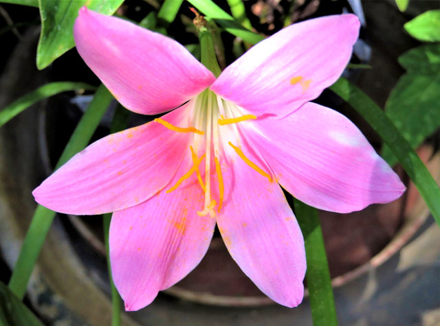 葱莲(Zephyranthes)又名葱兰,韭莲,玉帘等名.是石蒜科的葱莲属种.在美常作观赏植物,植株叶似葱,韭菜.白色的花.黄白色.至红色都有.一些中国人常把葱莲与韭莲作区分,例如葱莲(此照片的花)无花筒或短,才称葱莲,反之有花筒部的才称韭莲,美国人没有这么仔细去研究区分.[