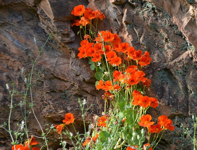 长于银湖边的一丛旱金莲.长于树下的一丛.目前盛开的后院自种旱金莲.自种的比银湖俏迟,仍处于初始阶段,花芽众多.而且是盆种.共有两盆.是本年4月尾下种的.至今是第一批花的出现.这是拍于5月下旬的生长照片,那时花还不多.第2盆的状况,那时连花也未出现.第1盆那时的状况.[