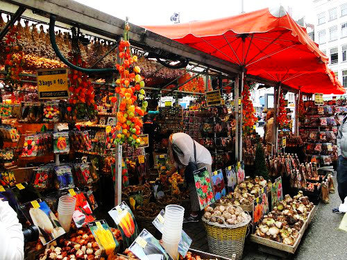 世界最大的花卉市场,位于荷兰首都阿姆斯特丹,一条运河边上,荷兰是世界上首屈一指的产花国,闻名遐迩.其产值占农业产值的12%.超过蔬菜6%,接近粮食16%的比例.鲜花更成荷兰出口商品之一.十七世纪荷兰曾是称雄海上的殖民国家,在全球曾占领不少殖民地.荷兰的东.西印度两公司业务远至亚洲.[
