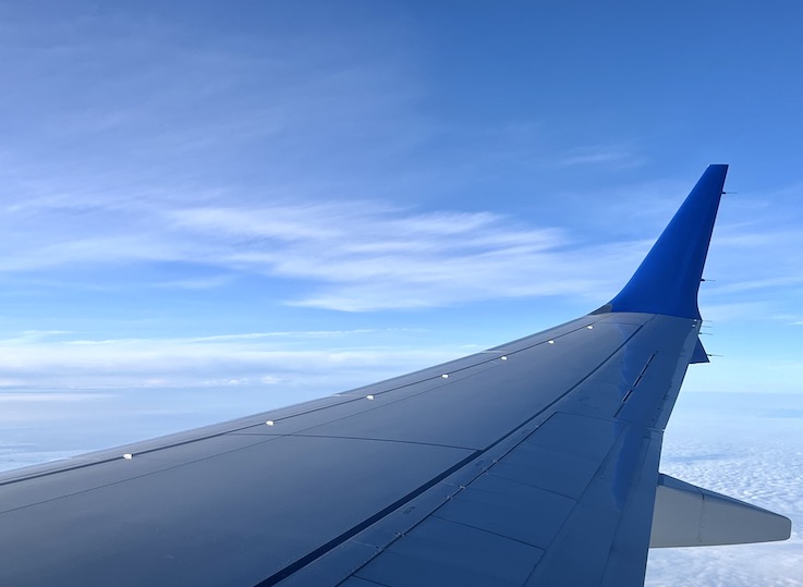 飞机在空中翱翔时,喝了一杯水,吃了一块饼,眯了眯眼.睁开眼,看一会儿电子书,看一会儿窗外的云,团团的云朵种植在天宇上,密密麻麻.偶尔一缕云絮随风飘过,飘[