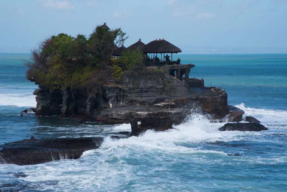 这是海神庙,TanahLot,涨潮时庙就给淹了,不能上去。
