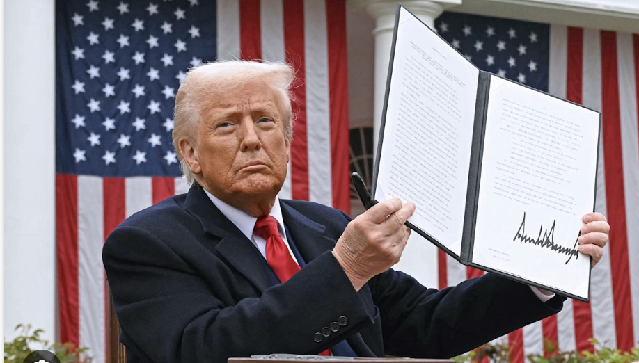 4月2日“解放日”,川普总统站在白宫玫瑰园,宣布了一项旨在重新平衡美国贸易的全面新关税计划。川普这一高得令人咂舌的新关税税率仿如一枚炸弹,引爆了美国股市抛售和美国资产的流出(下图THEHILL/YahooFinance)。国会中的一些共和党人罕见地谴责川普的高关税率,世界各地外交界也对其愤怒不已。在经历了一周沸沸扬扬地强烈反对后,川普总统宣布暂停除中、加[