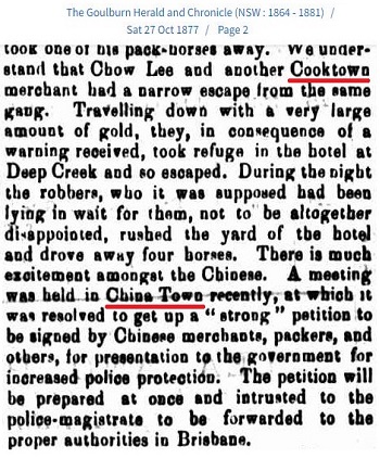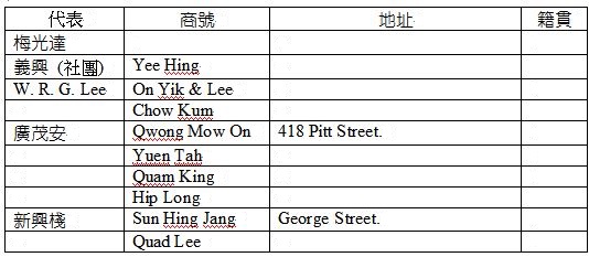這10年間的早期能查證華商並不多,尤其是連帶有地址資料的;報章中極為少見,到1880年因為有紐省殖民地政府的兩份公報:“新南威爾士州政府公報NewSouthWalesGovernmentGazette(1832–1900)”及“新南威爾士州警察公報及每週犯罪記錄NewSouthWalesPoliceGazetteandWeeklyRecordofCrime(1860–1930)”可查而多了起來。盡管如此,華商的數目還[