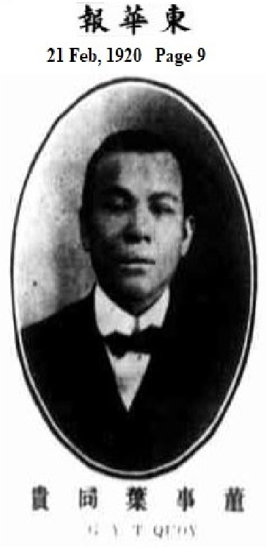 19.葉同貴(中澳郵船公司的人物面譜)假如在網上查閱葉同貴的資料會少之又少,這有幾方面原因:(1)在雪梨華人的資料中,同期從商華人中有成就很多,故葉同貴較多的只是出現在利生號的廣告。至於商業社團,號稱紐修威中華總商會也僅是代表部份的商會(且涉政甚深),他的名字在整群人中不算領導者。(2)以他個人的經濟能力,涉政的能力易不足,因為一旦涉及到政治必然[