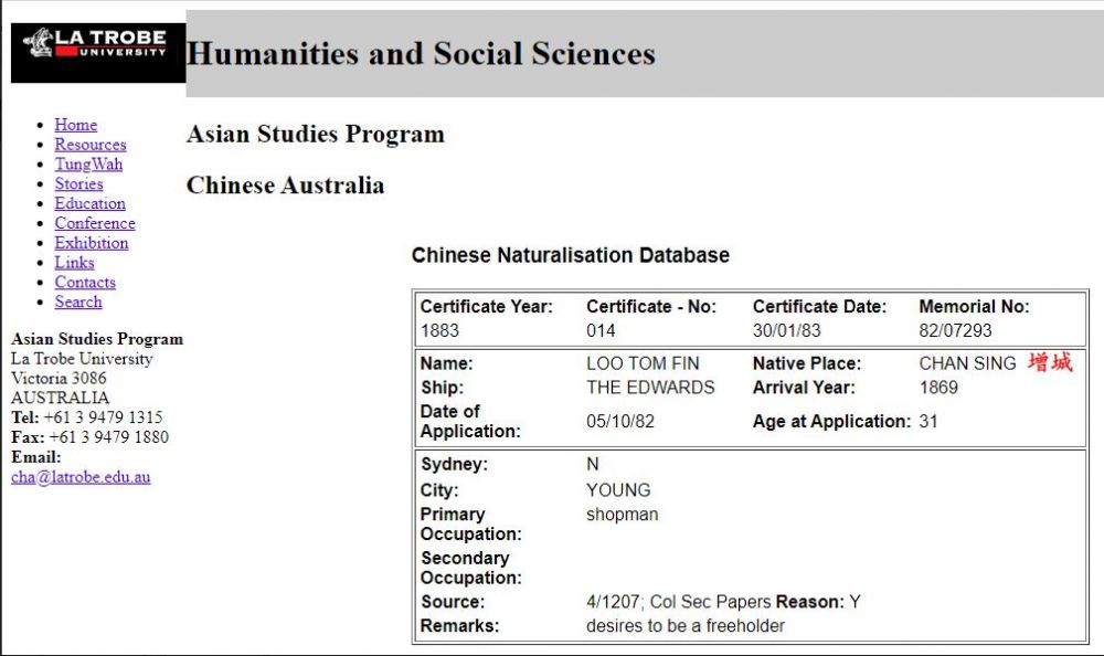 謝謝陸先生的關注及傳來的資料。根據陸先生及“鬼谷雄風”提供的資料,應可修正如下:1.出生年份及籍貫一直懷疑劉堂歡的籍貫是在東莞與增城之間。陸先生所提供的劉堂歡申請歸化入英籍資料表明劉堂歡是增城人是應可確定的。出生年份亦能在陸先生所提供的資料中推斷為1851年(1882年時為31歲)。換言之他比劉汝興(1859年)及葉炳南(1862)更年長。2.來澳洲年[