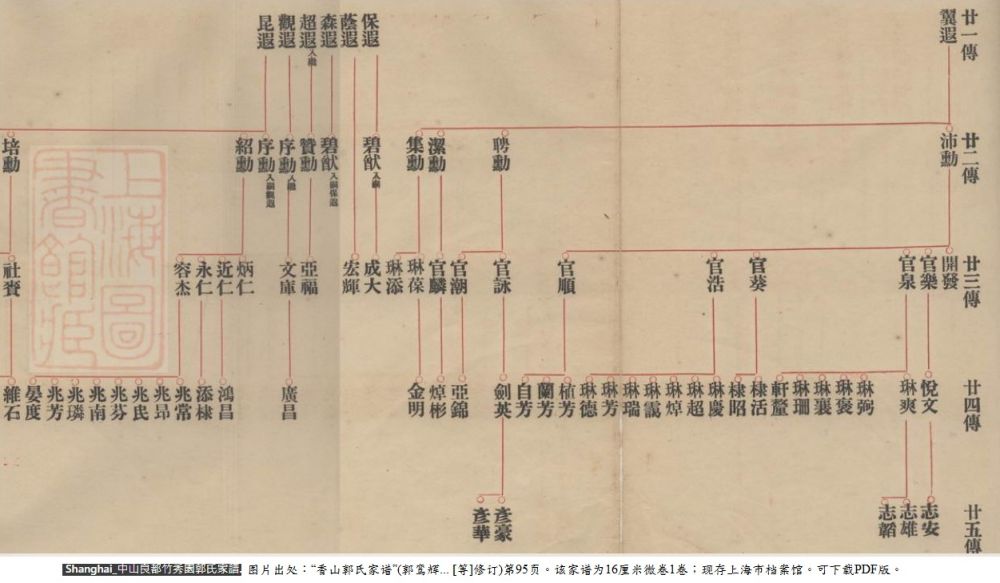 (图1)依据上图所显示的资料,该公司在现在广东中山市良都竹秀园郭氏第廿一传中郭翼遐的子孙辈活跃在上世纪初的雪梨。最早到澳洲的是郭沛勋长子郭开发到墨尔砵,早逝无后;另为四子郭集勋之子郭琳葆(改名郭标)。随后郭沛勋的其它五个儿子陆续到了雪梨。过去一直弄不清楚的郭潮及郭剑英的辈份,在这张图中也明白他们是郭翼遐三子郭聘勋的子孙。郭潮是郭剑英的[