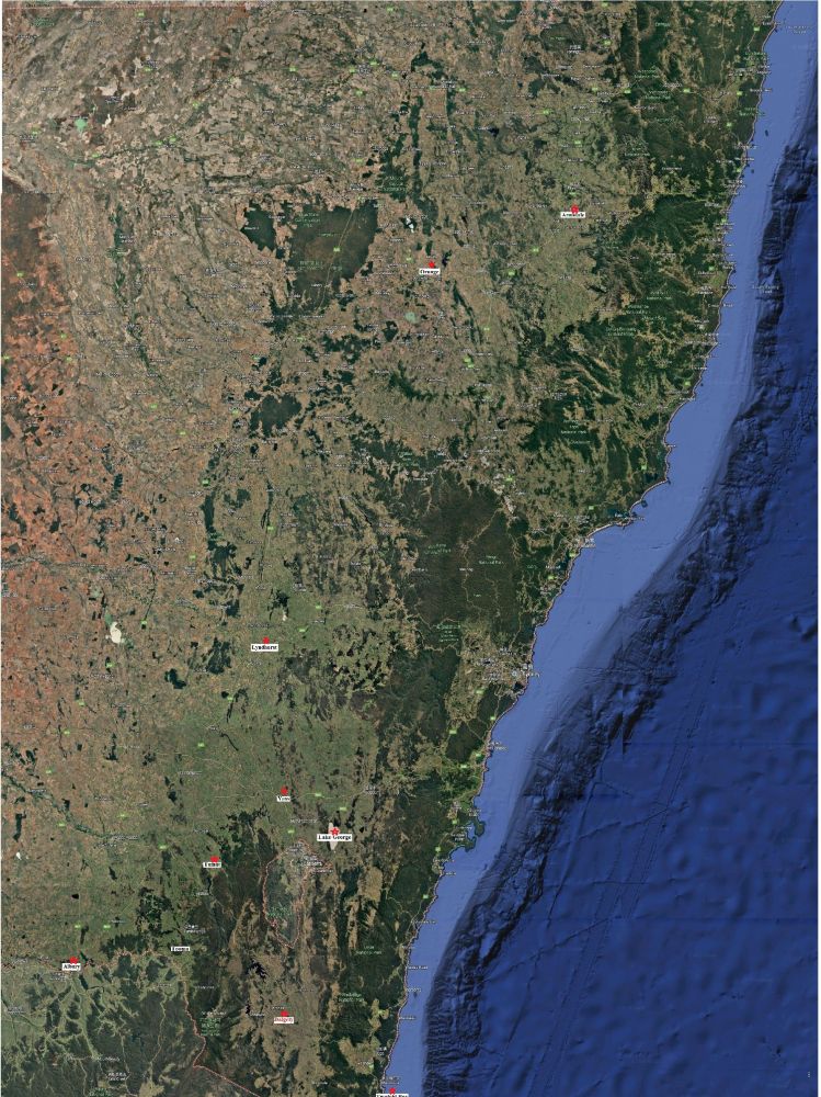 似乎不少人对堪培拉的历史有兴趣,故多写一点点。先附上1908年时各备选地点在地图上的位置(见图1):