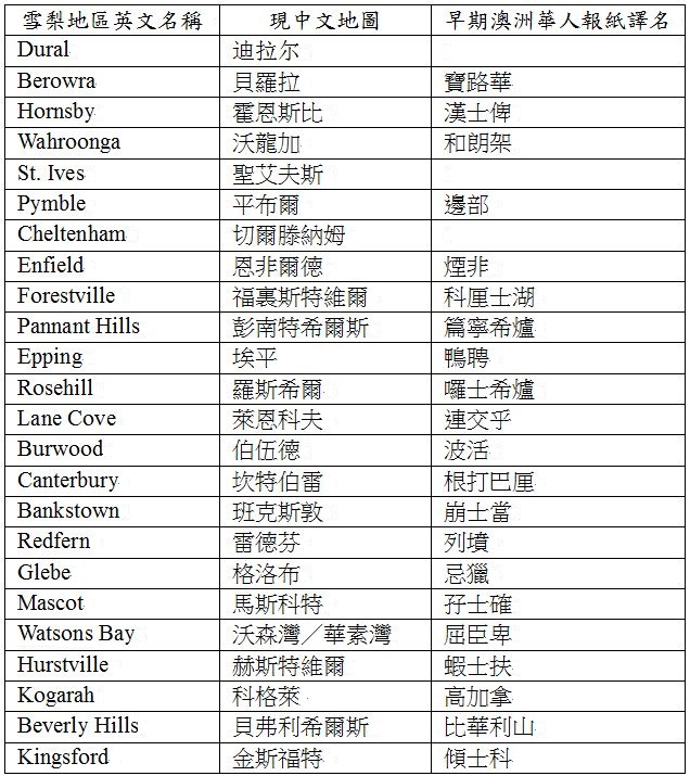 近20多年来几乎是以接触早期澳洲的中文报纸PDF版为主,对其间地名的不同译法是有点晕,在尚能接受的范围。这些年是写了点文章,也经常阅读一些国内外学者的著作,其间澳洲地名的译法经常懵圈;连到雪梨机场看到的“官方悉尼地图”也常采用中国的译法。“官方悉尼地图”中以英文地图部份问路应不是太大的问题,但假如想去四邑庙却是问人怎样去“格[