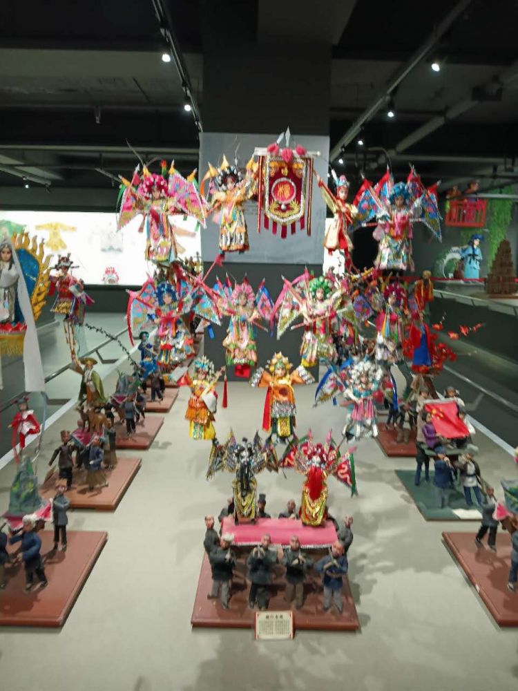 我去群艺馆那日,其高层楼楼上的“西安非遗博物馆”要十点以后才开,当日有事就在看完“新春画展”后撤了。我后来又找了一天专门来参观,觉得这展馆非常有意义也非常有意思。它展馆分布在三个楼层里,每个大约三四百平米。以非遗历史,及在陕西各地的典型表现而展现。上照片。社火类:泥塑类其他杂项:最后一张似叫“娃拉狗舔”,据说农村常[