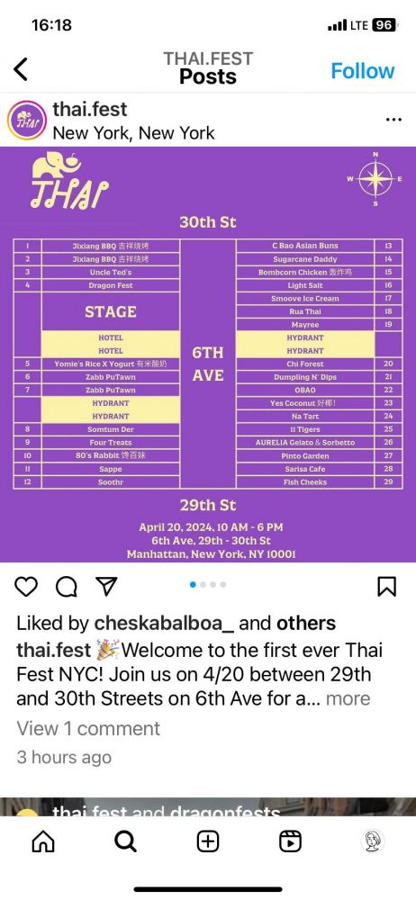 上周日,凑性跟家人逛了逛纽约泰国美食节。它位于曼岛六大道29至三十街区。
