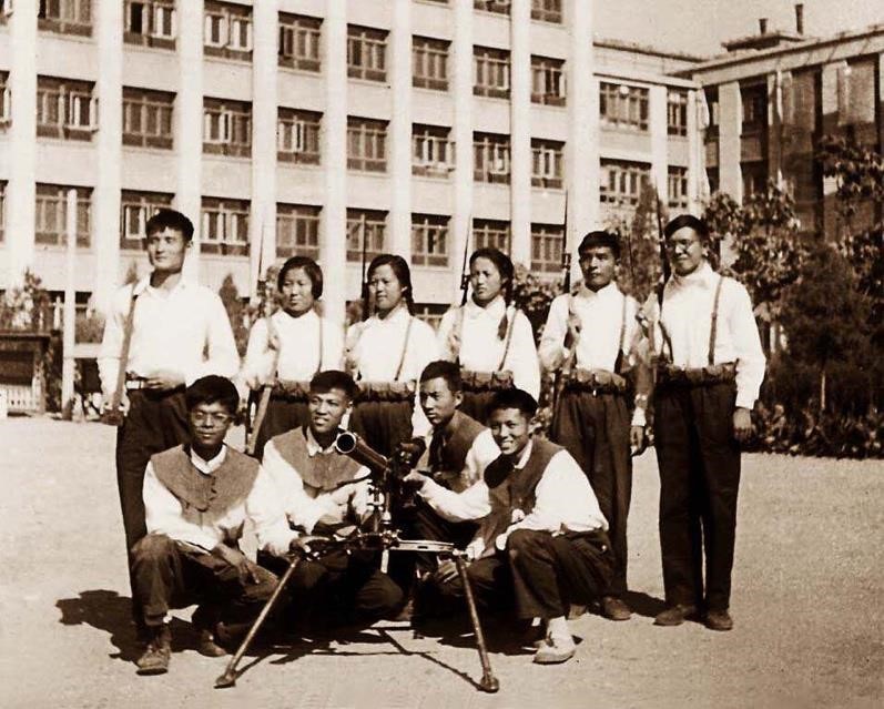王祖德(6361):最近各(微信)群热炒九三阅兵的照片和视频,我发一张当年我们在校时参加天安门广场国庆民兵阅兵训练时的照片。比较一下,颇有意思。记得有一年通过天安门时,我校方队都穿了黄色翻毛军用半高腰皮鞋,正步走时咔咔作响,很是威风[