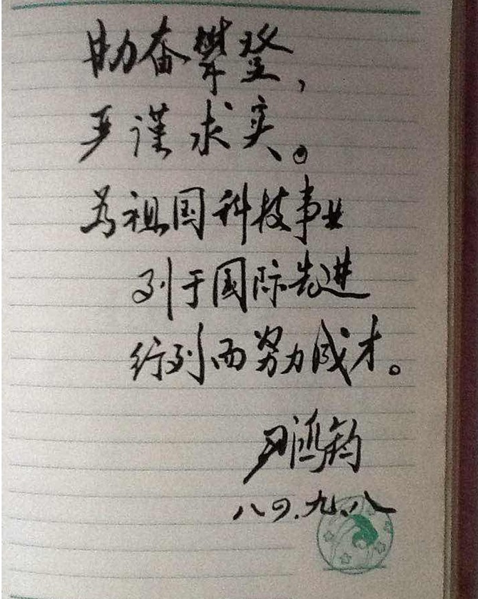 照片97时任教务长的尹鸿钧教授的毛笔字题词(784黄慈萍提供)