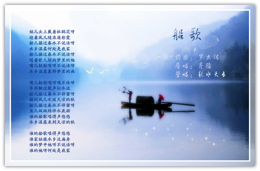 泛一叶扁舟唱首船歌,祝来访的朋友们周末愉快!:)