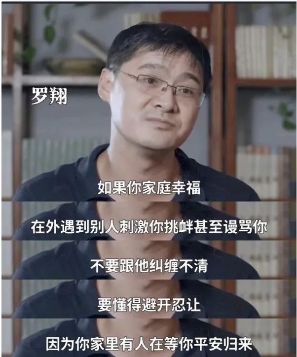 这段时间气候不好,有股戾气随冷空气蔓延,无差别伤害事件频发,有一个认怂的声音逐渐成了民众心头的主旋律:幸福者退让。据说这退让原则最早是罗翔提出来的:“当我们拥有幸福美满的家庭,就如同怀揣着世间最珍贵的宝藏……君子不立危墙之下,我们不是懦弱,而是因为心中有更重要的责任和牵挂。我们的家人在等待着我们平安回家,他们的笑容、温暖和[