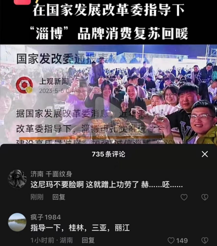 丘吉尔赞美保卫伦敦的空军:“在人类征战的历史中,从来没有这么少的人对这么多的人做出这么大的贡献。”套用这个句型说淄博烧烤热:在人类经济史上,从来没有这么多的人对这么小的生意倾注这么大的厚望。在经济萧条的困境中,淄博烧烤仿佛肩负着指出“路在何方”的使命。各地纷纷到淄博取经,锦州烧烤协会组织烧烤摊主统一着装宣誓:牢记使命,振[