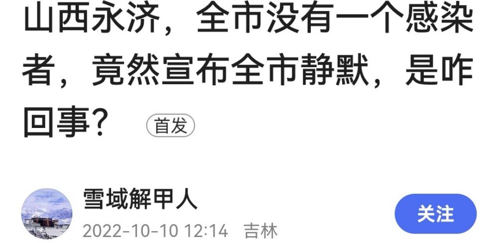 山西省永济县在无一例阳性患者的大好形势下,毅然全县静默管理,引起网上舆论争议。有阳静默大家只能表示理解,无阳静默,满网表示呵呵,连中央党校教授李勇都看不下去了,当反面教材说事儿。永济县领导忠而见谗,与屈原心境相通:“荃不察余之中情兮,反信谗而怒。”古有晋材楚用,今有晋情楚辞:疫漫漫其修远兮,俺要静默而管控。