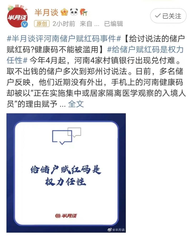 近日,河南一路飘红冲上热搜,热度压过唐山流氓围殴女人案。全国各地40万储户在河南村镇银行的400亿存款无法取出,近期来郑州、开封等地尝试线下取钱。但抵达后,他们的健康码被赋红码。储户本来是取存款的,直接先给分“红”了,享受红二代待遇,被赋红码,成了红驸马,不知道河南村镇银行有多少库存公主。谁一旦被赋红码,就像一匹木马,只能呆着不能动[