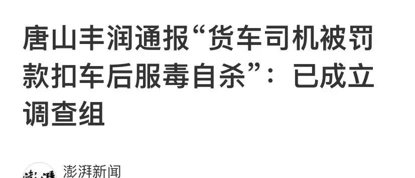 邱开冒一丘万壑昨晚看到一则令人伤心的消息,河北沧州泊头市货车司机金德强4月5日途经唐山市丰润区超限检查站时,因北斗定位掉线,被罚款2000元,并扣车。随后,绝望中的金德强服农药自杀,最终抢救无效去世。