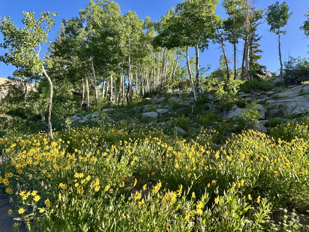 犹他州的盐湖城地理位置独特,位于瓦萨奇前缘(WasatchFront)的底部。瓦萨奇前缘是更大的瓦萨奇山脉的一部分,这样的地理位置使得盐湖城附近有大约11条峡谷。夏天和秋天是徒步的好地方;冬季和春季是滑雪的极佳渡假胜地。七月份有机会去了两个峡谷爬山。山里天气凉爽,早晨上山,温度~10C,中午回到山下,15-18C。而且空气干燥,真是徒步的最佳时节。山间的小湖(Brighto[