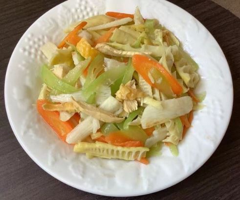 黄、芹白、香菜梗6种蔬菜加火腿丝烹制,张大千非常喜欢,