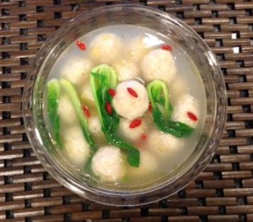 一.材料:黑鱼净肉400克、(可以用新鲜龙鯏魚替代)猪肉肥膘50克、龙口粉絲15克、蛋清一只、菜心2棵、枸杞子几粒。