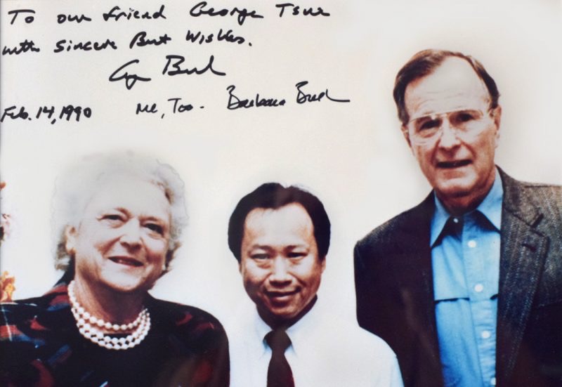 帅哥靠近我,要我们打开包让他们检查,不久又见到一大堆警察围着老布希,夫人巴巴拉和几个孙子女笑嘻嘻的进来,经过我们桌边马上举手跟我们打招呼,他还单独问我;好吃吗[