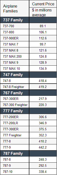 首先跑到波音官网上查了一下,LISTPRICE如下: