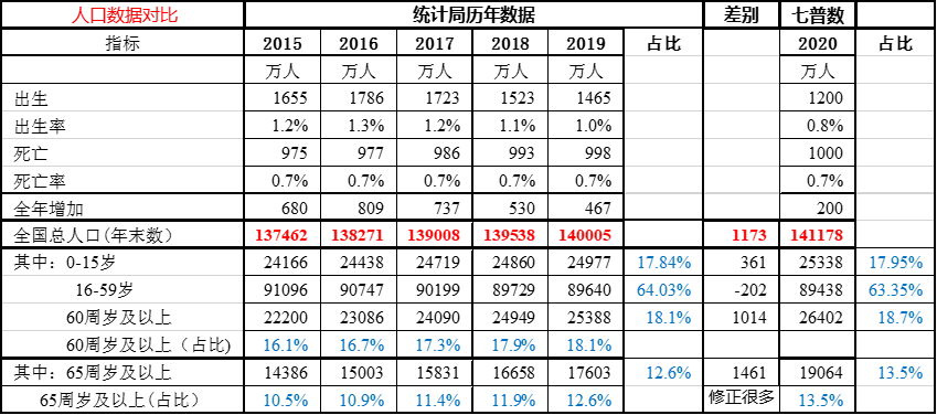 但是按照统计局2019年公布数据,全国人口为140005万,但是到2020年底突然变成了141178万。比2019年统计局提供的抽样统计结果14亿多了1100万,而统计局同时公布2020年出生人口1200万,死亡人口1000[