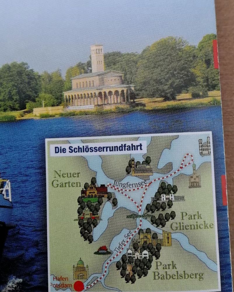 《普鲁士的圆明园》美居酒店矗立在菠茨坦城中心,一看就知道这是改建东德时期的,因为它是那么突兀地站在那里,与周围的建筑格格不入。外观虽然煞风景,入住里面倒是可以看风景,老公临窗一眺,直直地就发现了楼下的游览观光船。柏林周边湖泊众多,四通八达,乘船兜风去哈弗尔河,从水路欣赏城市一直是老公的一个愿望,现在是天遂人意,乘船站就在脚下,哪有不去之理,毕竟错过[