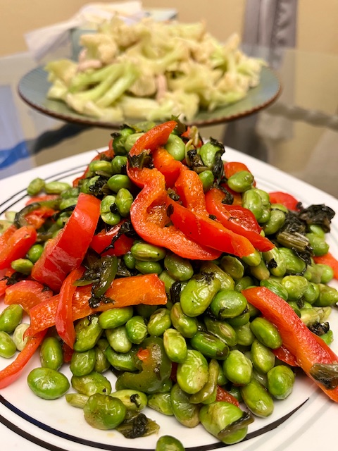 虽说自冠"吃货"头衔,可是口味还是比较偏于清淡的。不是不喜欢大鱼大肉(这次兄长做的红烧猪蹄就让我大快朵颐),只是不喜欢多吃。出门赴京之前,在家吃了最后一餐,印象深刻的是雪菜毛豆----雪菜是住在我家附近的我的中学老师腌的,用的是她自己种的芥菜,毛豆则是我们家地里的出品。鲜美都在食材里,虽然普通,可是入味。