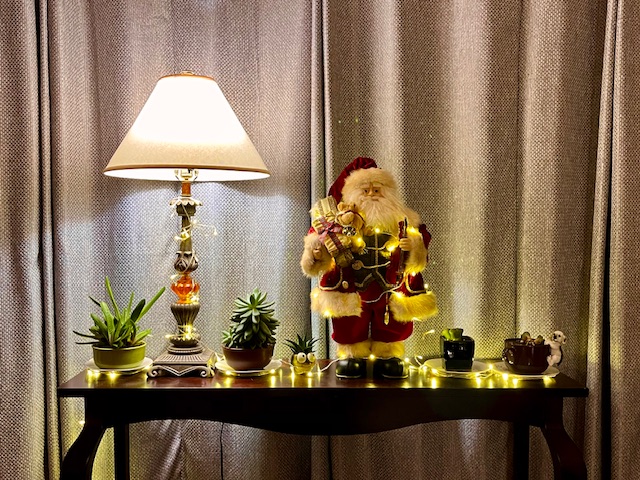 又到了搞圣诞树的时候了。今年娃不在家,我自己搞得满头大汗,还只是把灯搞好了,等娃回家再放ornaments。