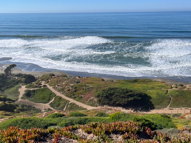 其实,人生中有很多"中间"的事情。今日出去hiking,在山坡上眺望海边的一片山谷坡地,看见上面交织着很多羊肠小路,我俩忽然感叹人生不过如此:有的道[
